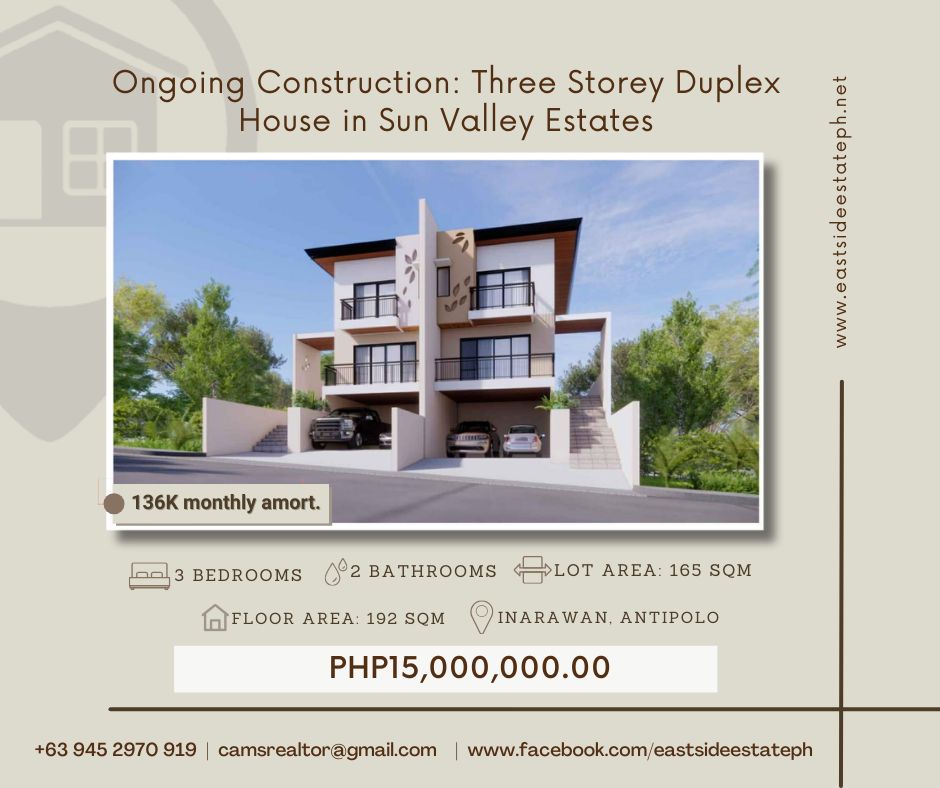 Own a home where everyday feels like a vacation. A 3-Storey Duplex House and Lot in Sun Valley Estates, Antipolo City for ₱15M at ₱136K monthly amort.